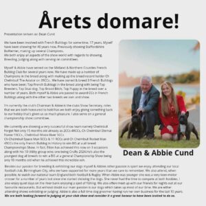 Intresserad av att bli med i utställningskommittén? Kontakta Thomas Åblad som är sammankallande i utställningskokmmittén för mer information utstallning@franskbulldoggklubb.se